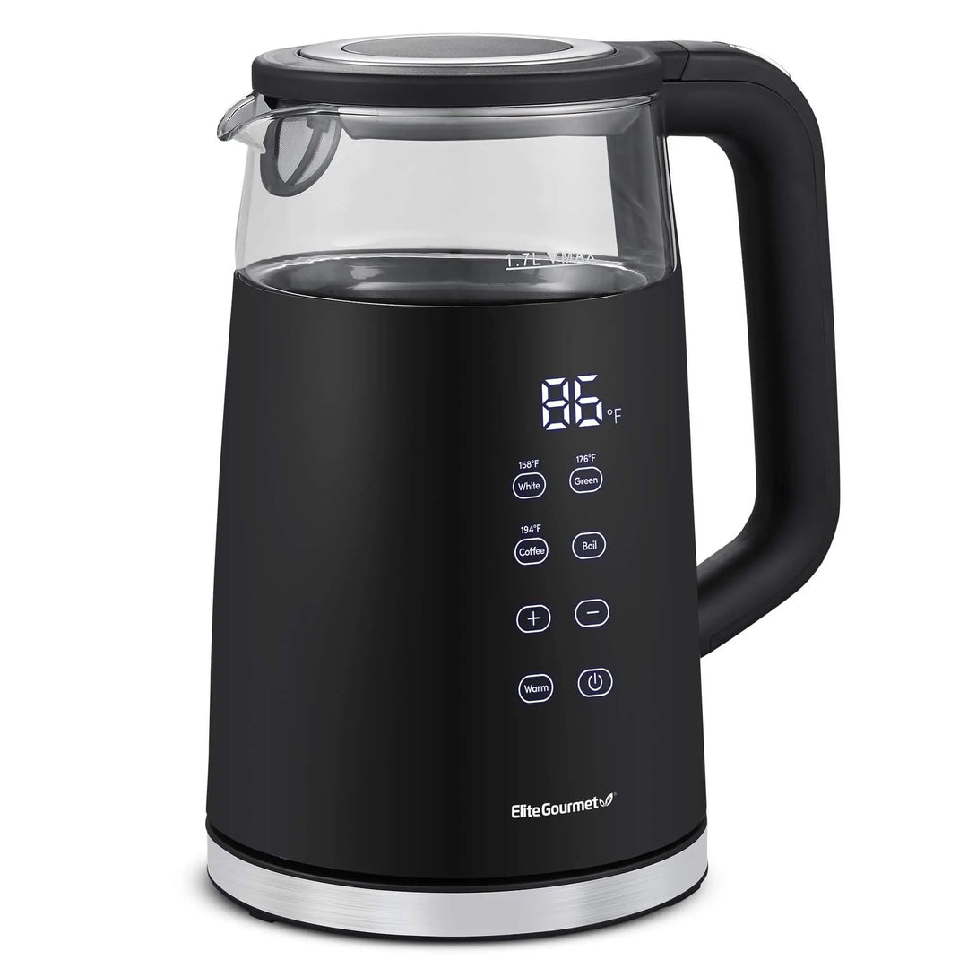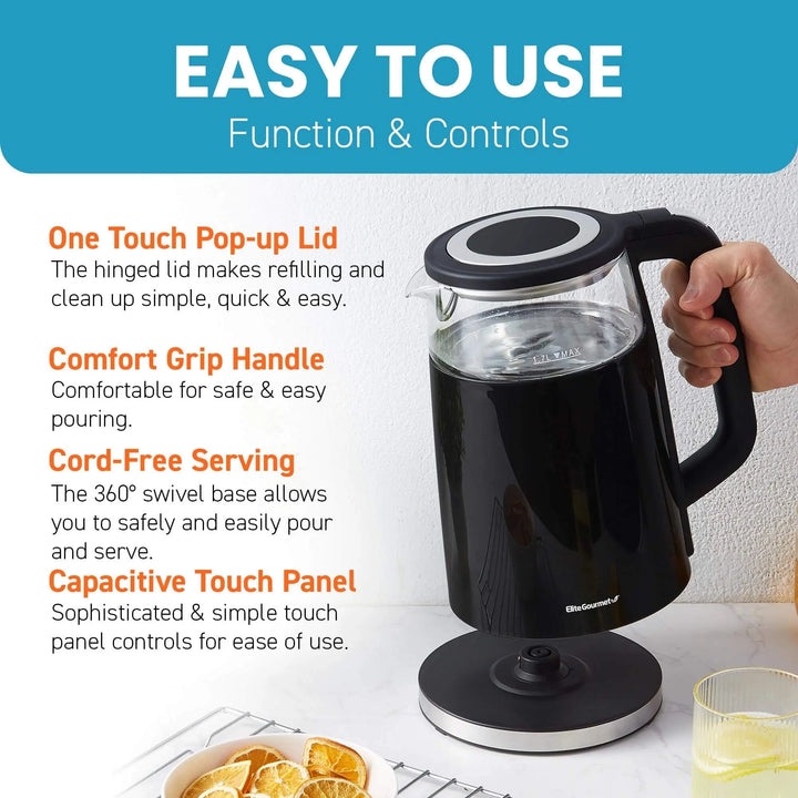 Elite Gourmet Electric Tea Kettle, Borosilicate Glass, 1.7 L - Black