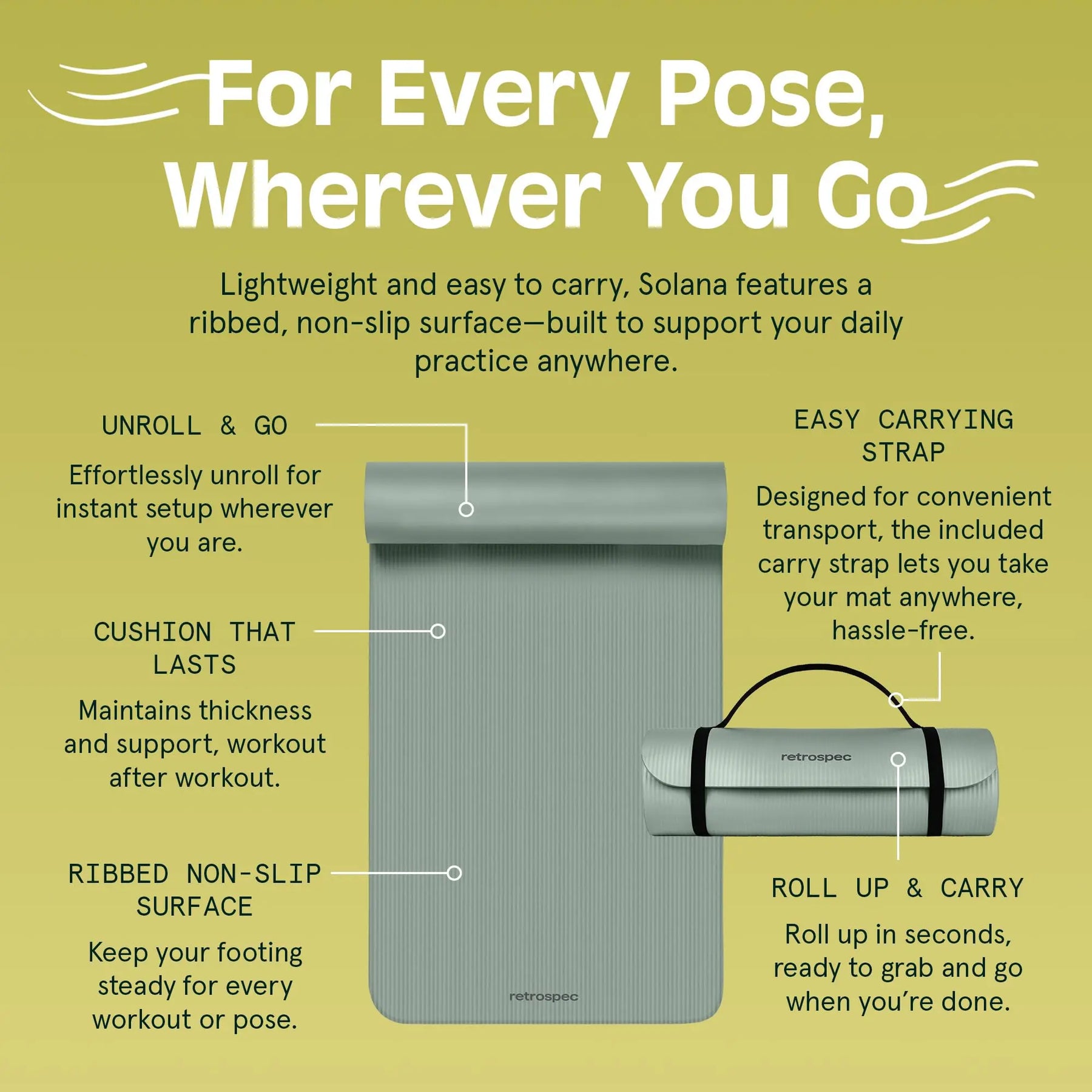 Retrospec Solana Yoga Mat, 1/2" Thick w/Nylon Strap, Non-Slip Unisex Exercise Mat for Yoga, Pilates, Stretching, Floor & Fitness Workouts - Sage