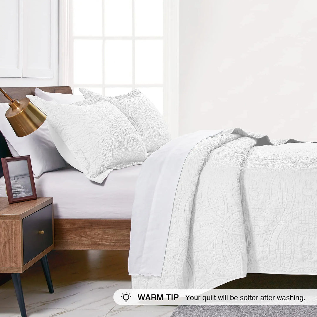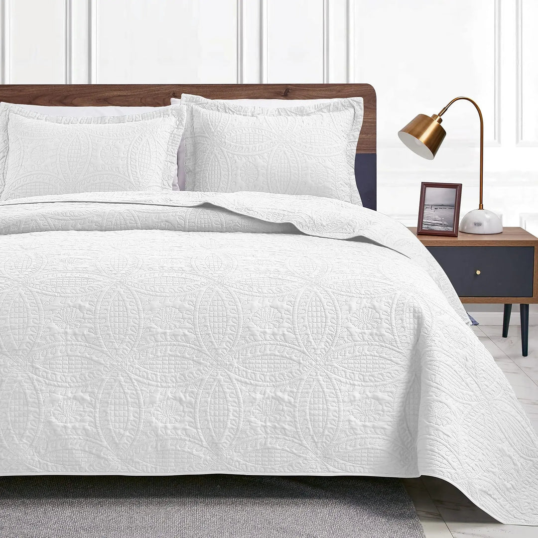 Love's cabin Quilts for Queen Bed White Bedspreads - Soft Bed Summer Quilt Lightweight Microfiber Bedspread- Modern Style Coin Pattern Coverlet for All Season - 3 Piece (1 Quilt, 2 Pillow Shams)