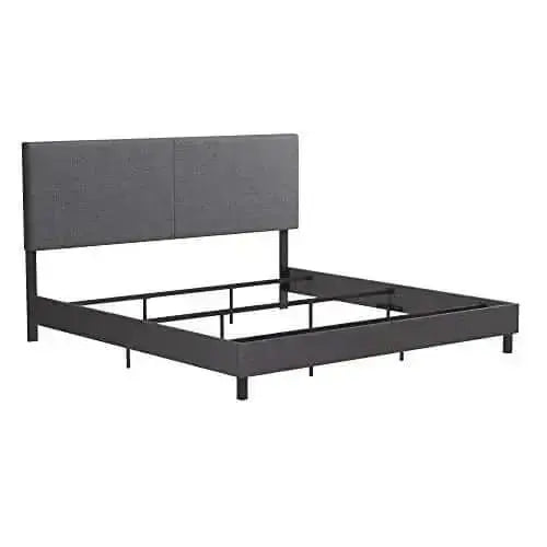 Sophisticated simplicity and reliable support define the DHP Janford Upholstered Bed Frame, a chic and understated centerpiece designed to elevate any bedroom. Combining a metal frame reinforced with side rails and center legs for long-lasting stability, the Janford pairs style and strength in equal measure. Its rectangular wood headboard upholstered in soft grey linen creates a modern, uncluttered aesthetic that fits effortlessly into virtually any decor—proving that elegance often lies in simplicity.