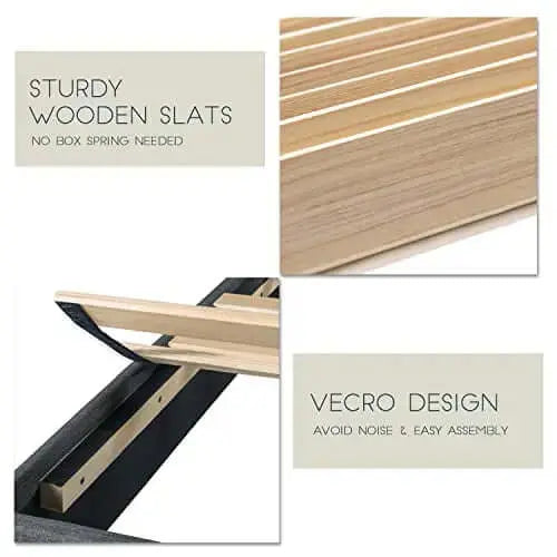 • Premium Upholstery: Crafted from 100% polyester fabric, the bed frame provides a smooth, soft finish that’s both durable and easy to maintain.