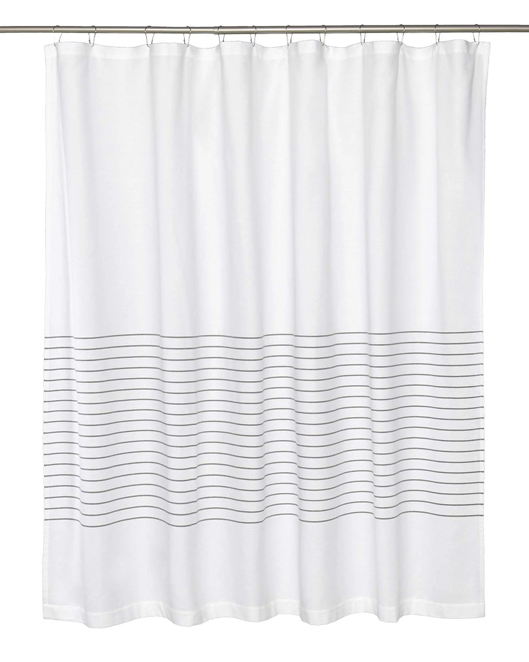 Awellife Farmhouse Grey Shower Curtain, 72" x 72" - Gray Striped White Linen