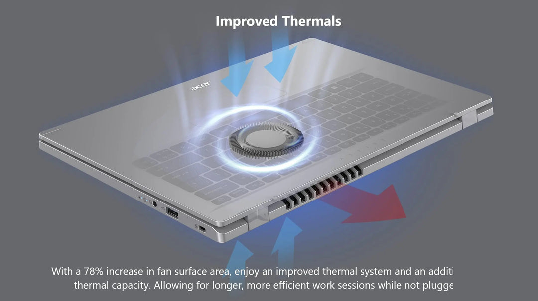 • Improved Thermals: Work longer and more efficiently thanks to an enhanced thermal design with a 78% increase in fan surface area and 17% more thermal capacity, keeping the laptop cool during extended use.
