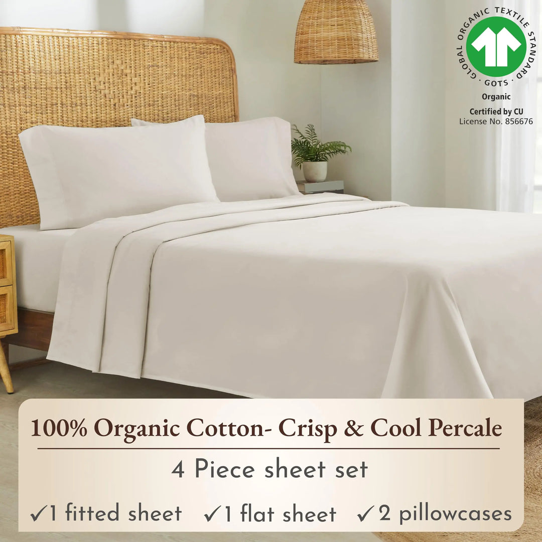 • WAKE UP REFRESHED EVERY DAY: Enjoy the cool and crisp feeling of percale weave with our 100% organic sheets queen set for a comfortable and refreshing sleep.