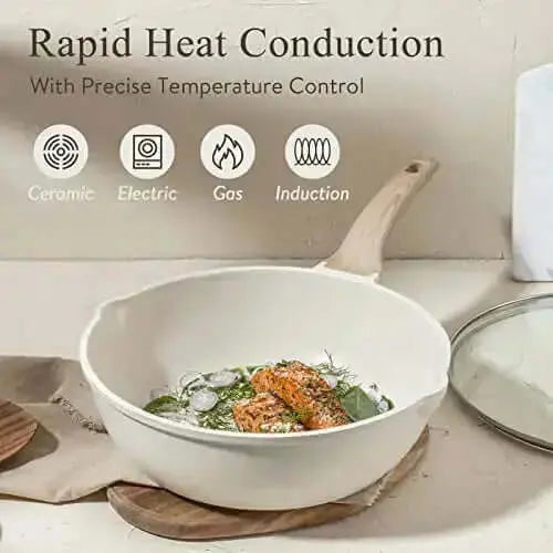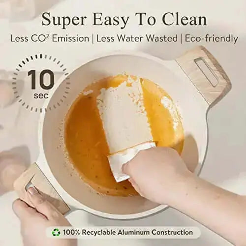 • Eco-friendly White Granite – A top level, harder nonstick granite material with 10x Ultra Non-stick performance, SGS & EUROFIN approved, PFOS/PFOA free, our cookware ensures your daily cooking is always safer and healthier.