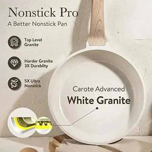 CAROTE Pots and Pans Set | Nonstick 10 PC Cookware Set - White CAROTE
