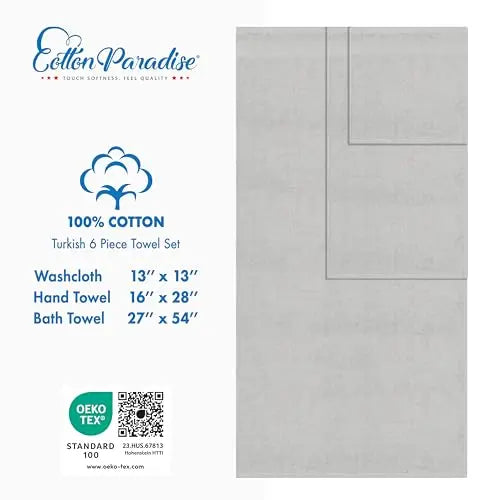 Cotton Paradise Towel Set, 6-PC, 100% Turkish Cotton, Soft - Silver