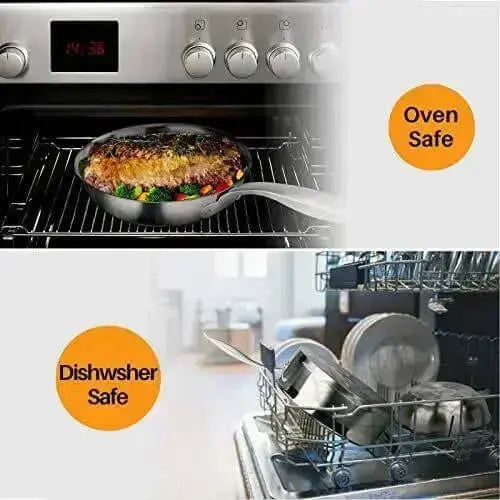 • OVEN-SAFE: Duxtop stainless steel cookware are oven-safe to 550°F (glass lid is oven-safe to 400°F). Dishwasher-safe. Freezer-safe for food storage. Limited lifetime warranty.