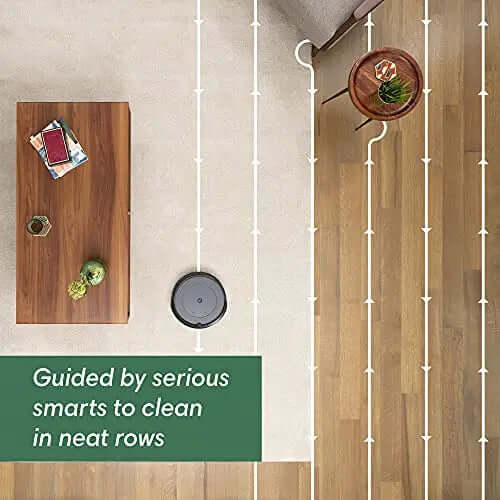 • CLEANS IN NEAT ROWS: Intelligent, straight-line navigation uses floor tracking sensors to clean purposefully and logically in neat rows. When the i3+ needs to recharge, it will resume right where it left off ensuring a complete clean.