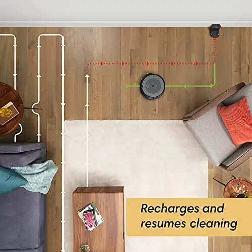• AUTOMATICALLY RECHARGES - When battery gets low, the robot automatically finds its base to completely recharge until the next cleaning.