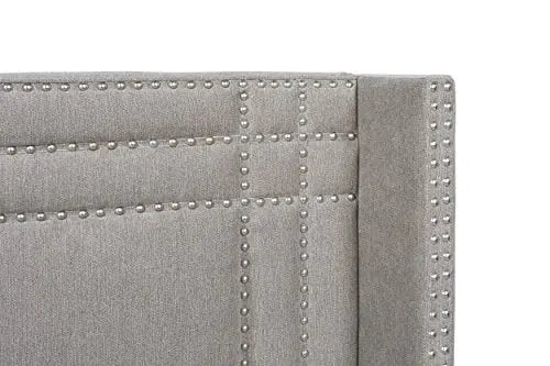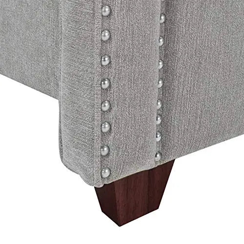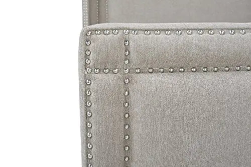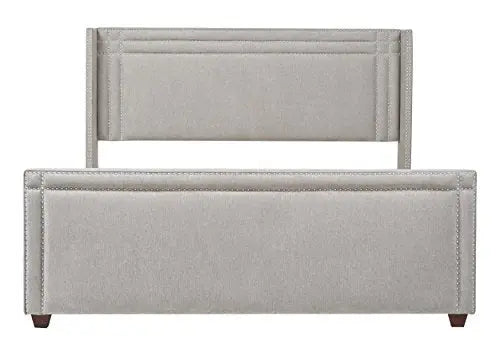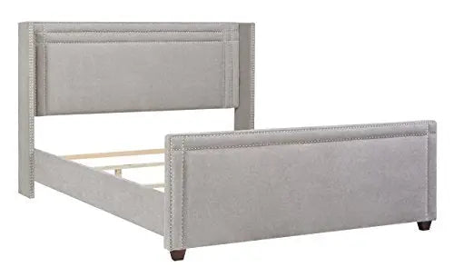 Jennifer Taylor Home Elle Collection Modern Upholstered Bed Frame, Nailhead Trim - Silver Gray