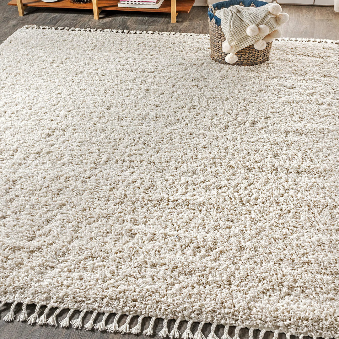 JONATHAN Y Mercer Shag Plush Tassel Rug, Bohemian Modern Contemporary, 8' X 10' - Cream with Tassel