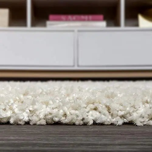 • Luxurious Shag Texture: With a nearly 2" pile height and soft cream color, it adds a comfortable layer of texture and warmth to medium-traffic areas.