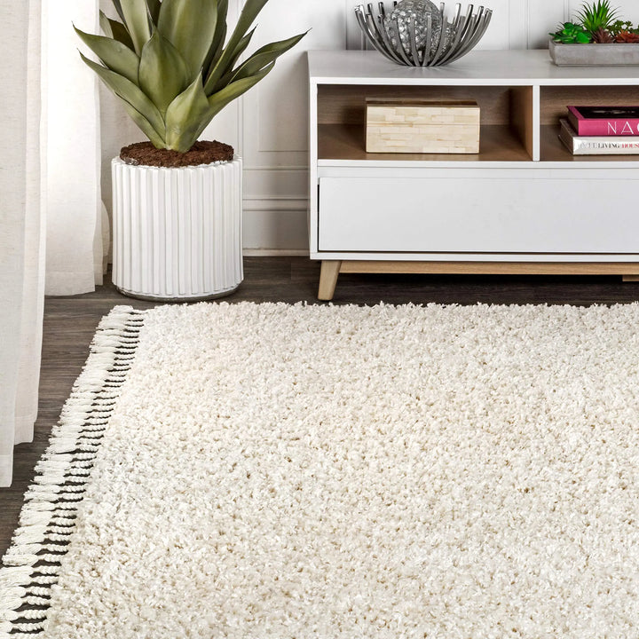 JONATHAN Y Mercer Shag Rug - Cream with Tassel