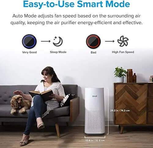 • Smart Functionality: Auto mode adjusts fan speed based on air quality