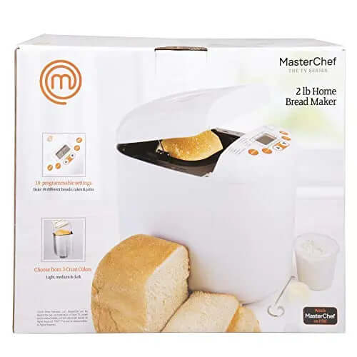 MasterChef Bread Maker, 2 LB, 19 Settings, 3-Hour Delay Timer, Recipe Guide - White