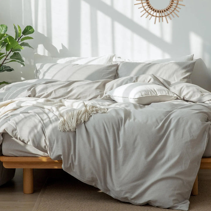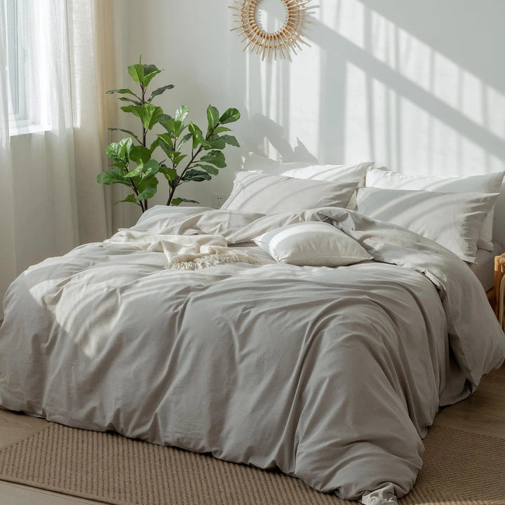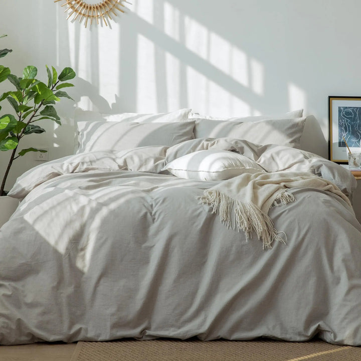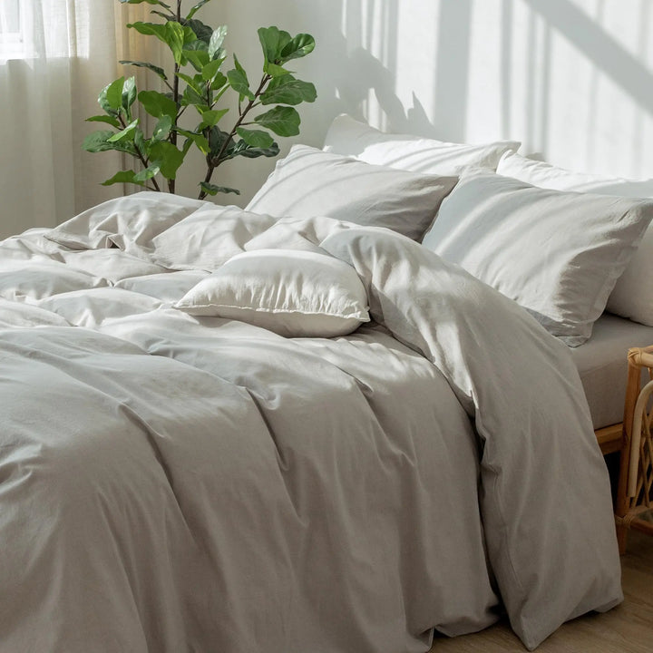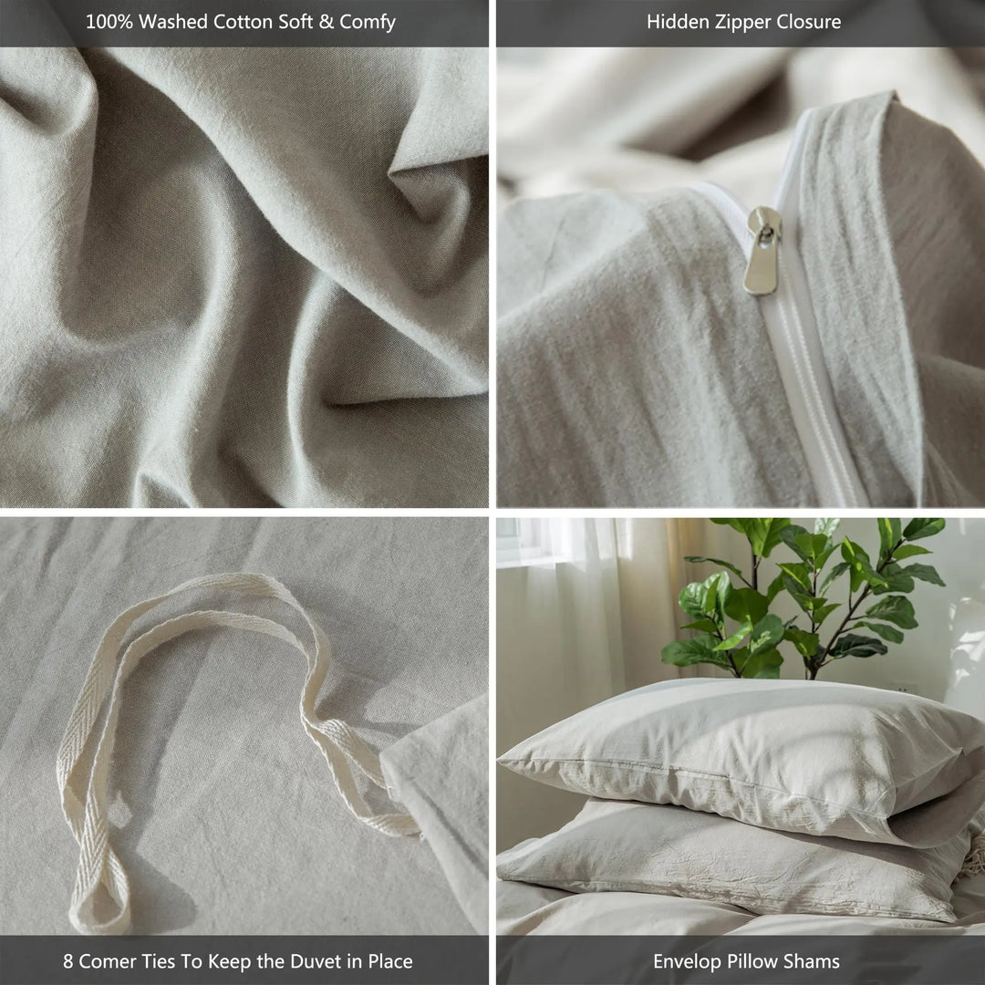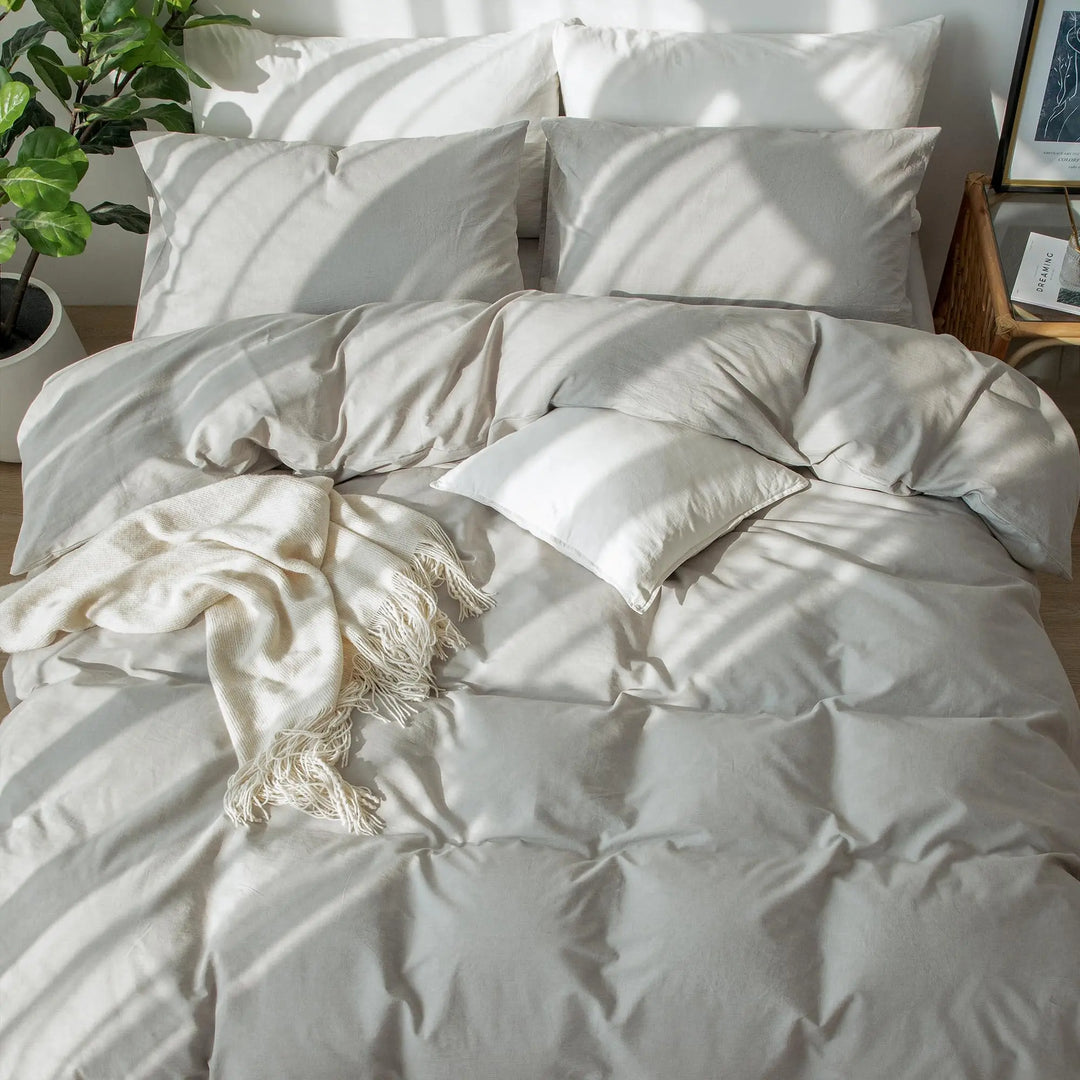 • Great Texture & Comfort: Looks like linen, feels like cotton, with a lived-in, slightly wrinkled look, which offers that feeling of staying at a nice resort where the duvet covet sets are always crisp, clean and comfortable. The relaxing look of this pastel grey bedding set and the cool texture make it hard to get out of bed.