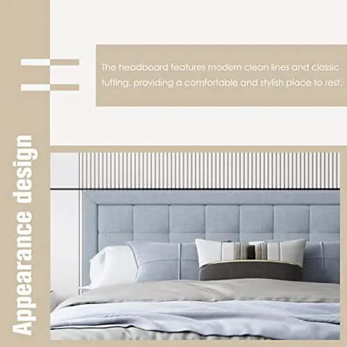 • Tuffed upholstere headboard, square button stitched; Fabric is thick and durable.