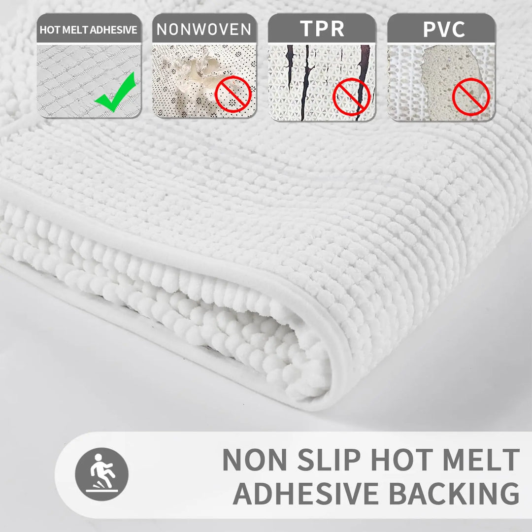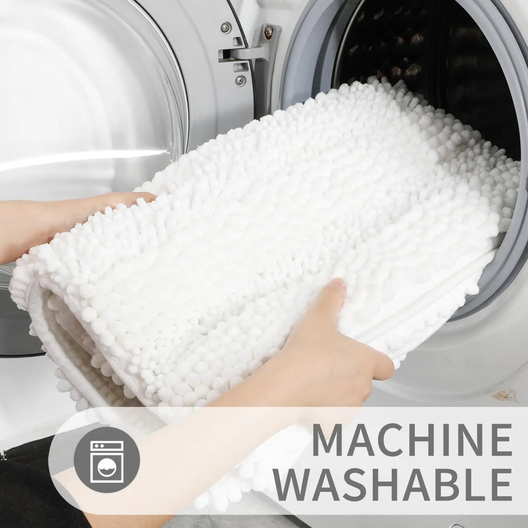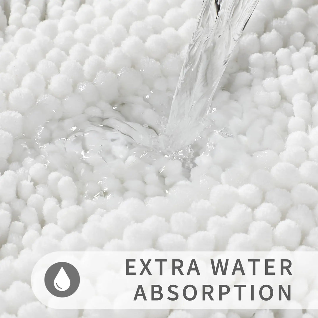 • ABSORBING & QUICK DRYING: Yimobra shaggy chenille bath rugs for bathroom use special technology to absorb and dry moisture, when you step out of the bathtub and shower, the pile quickly absorbs moisture from your feet, allowing your feet to dry quickly; moisture is trapped in a pile of 1.2 inches deep mats, allowing the bath rug to dry quickly and cleanly, and keeping your floors dry