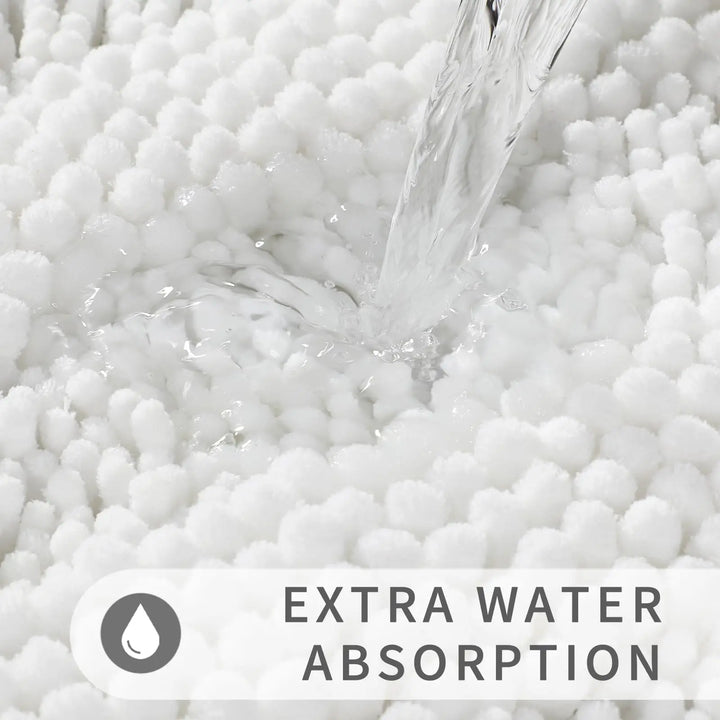 Yimobra White Bathroom Rug Mat, Non Slip Quick Dry Bath Mats, Extra Thick and Super Absorbent Bath Rugs, Luxury Microfiber Chenille Plush Fluffy Washable Soft Shower Carpet for Floor, 24" x 17"