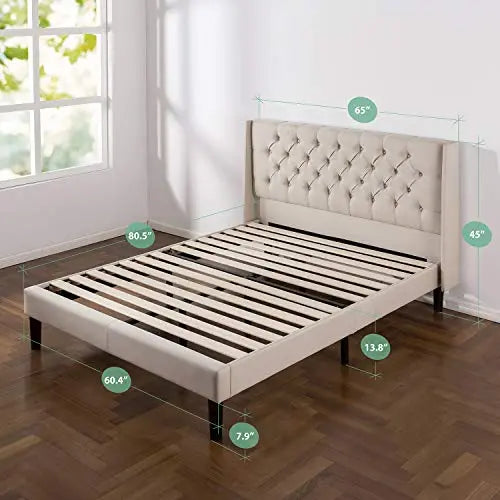 ZINUS Desmond Upholstered Platform Bed Frame with Wingback Headboard | Mattress Foundation, Wood Slat Support, No Box Spring Needed - Taupe